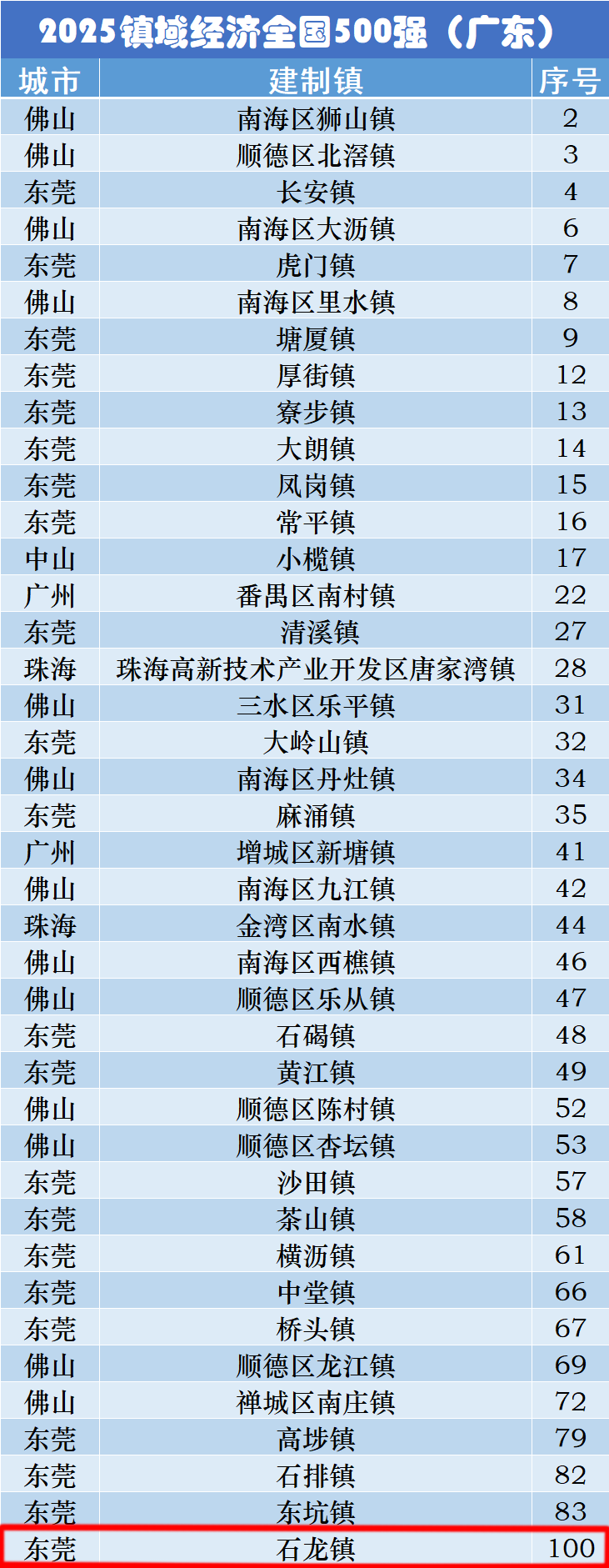 石龙成为新进入前100强的镇!